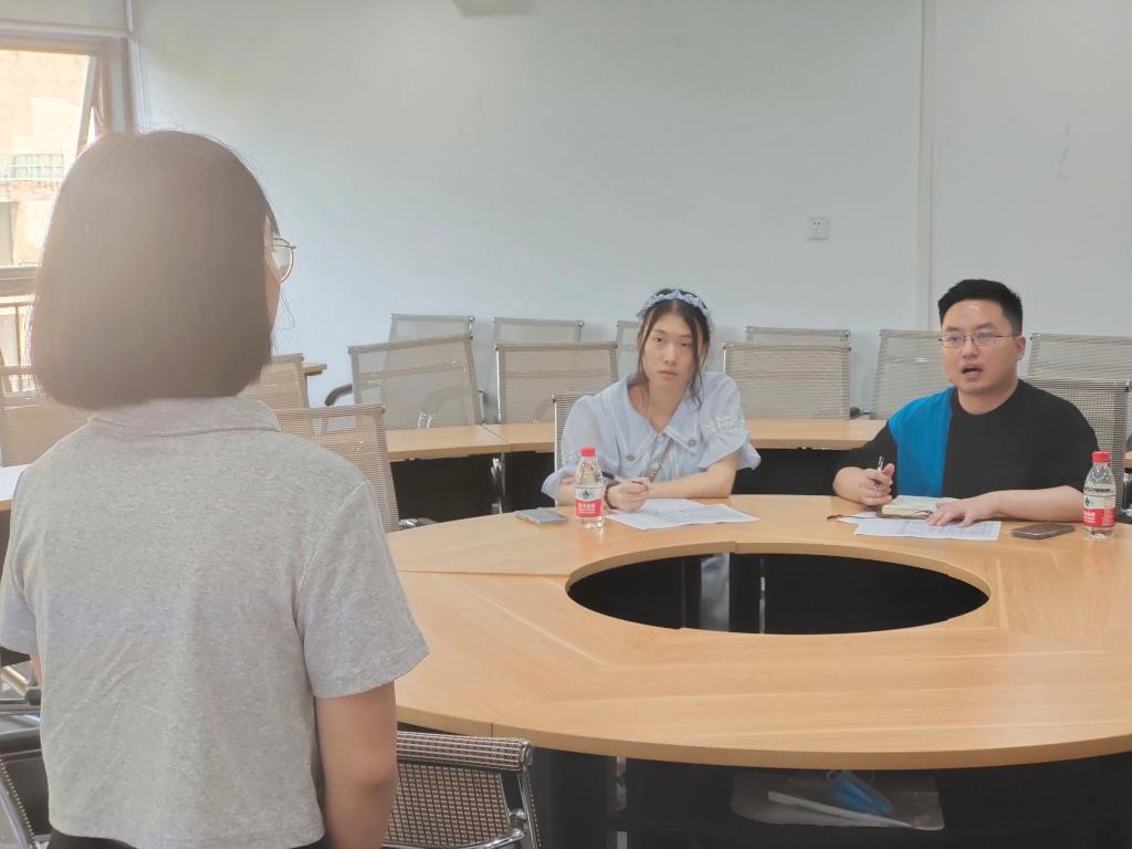 选拔会分为两个环节,一是志愿者自我介绍,二是指导教师提问。面试的志愿者们热情洋溢、青春自信,通过自我介绍了解到,他们不乏参加过养老院志愿服务、社区志愿服务、核酸志愿服务等多种志愿服务经历。还有不少同学有摄影、绘画、弹吉他、视频剪辑等特长。在面试提问环节,周利民强调了本次“三下乡”志愿服务的活动主题和重要意义,希望志愿者有集体协作意识、大局意识、奉献意识,要有吃苦耐劳和勇于克服困难的精神,在社会实践中“受教育、长才干、作贡献”。