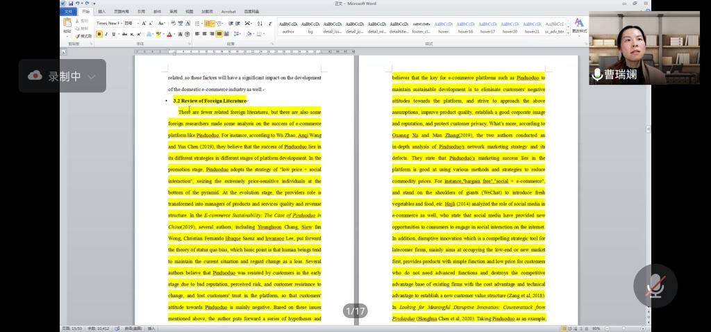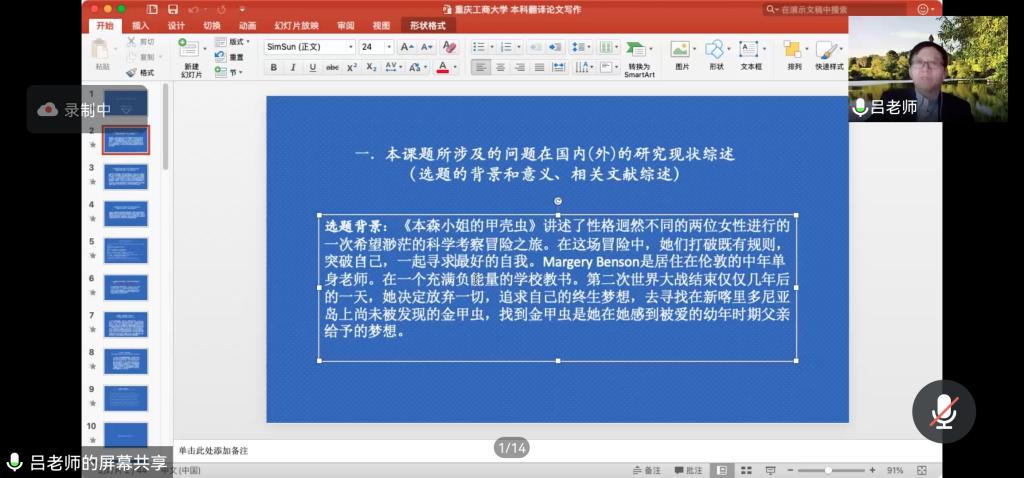 六位专家围绕本科毕业论文全流程,从选题、开题、研究、写作、答辩、学术诚信等重要环节进行讲座。吕世生教授通过解读上一届毕业论文,为同学们提供了毕业设计方向与思路的引导;翁凤翔教授为商务英语专业同学提供了广袤远大的设计远景,并通过生动的实例为讲解了商务英语专业毕业设计的特点;曹娅副教授以法语本科学习阶段学习为切入口,介绍了法语文学与翻译领域的毕业设计开展工作,为法语专业员工提供了良好的导向与指引作用;冯光武教授希望同学们能提前涉猎相关文章,并在广泛阅读中找到自己感兴趣的研究主题、学习写作的方法;于建华教授从毕业论文的结构出发,介绍了确定选题的方法及如何细化所选主题,开题报告的主要内容及前期准备任务;曹瑞澜教授介绍了文献的查阅途径及注意事项、主要研究类型及方法。在讲座中,专家结合审阅2021届毕业论文中发现的问题,给出了详实的例子,为同学们提出了切实的建议,特别强调了员工诚信的重要性。讲座结束后,公司师生积极提出问题,专家们逐一耐心回答,讲座受到了与会师生的高度评价。